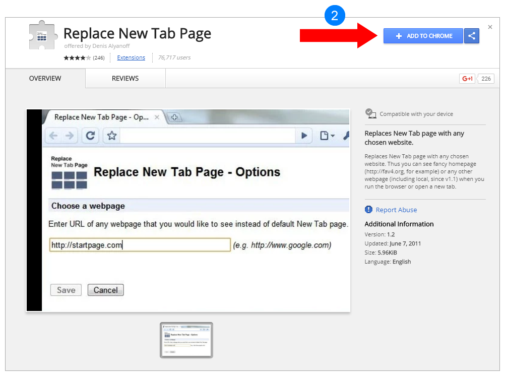 Če želite, da se vam domača stran prikaže ob odprtju vsakega novega zavihka, si morate namestiti razširitev.