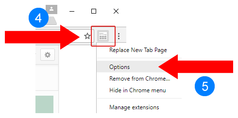 Kliknite na ikono označeno z rdečim kvadratkom ter nato izberite "Options".