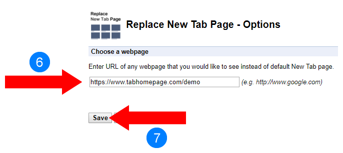 Vpišite naslov domače strani ter kliknite na gumb "Save".